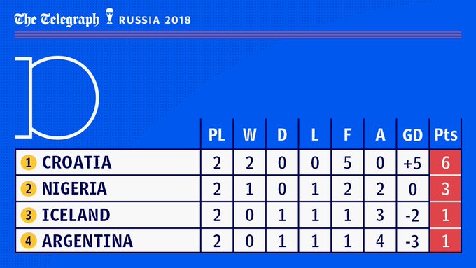 Croatia has taken the lead in the other game! Argentina needs to win to go through - Nigeria is in second in the table for now!